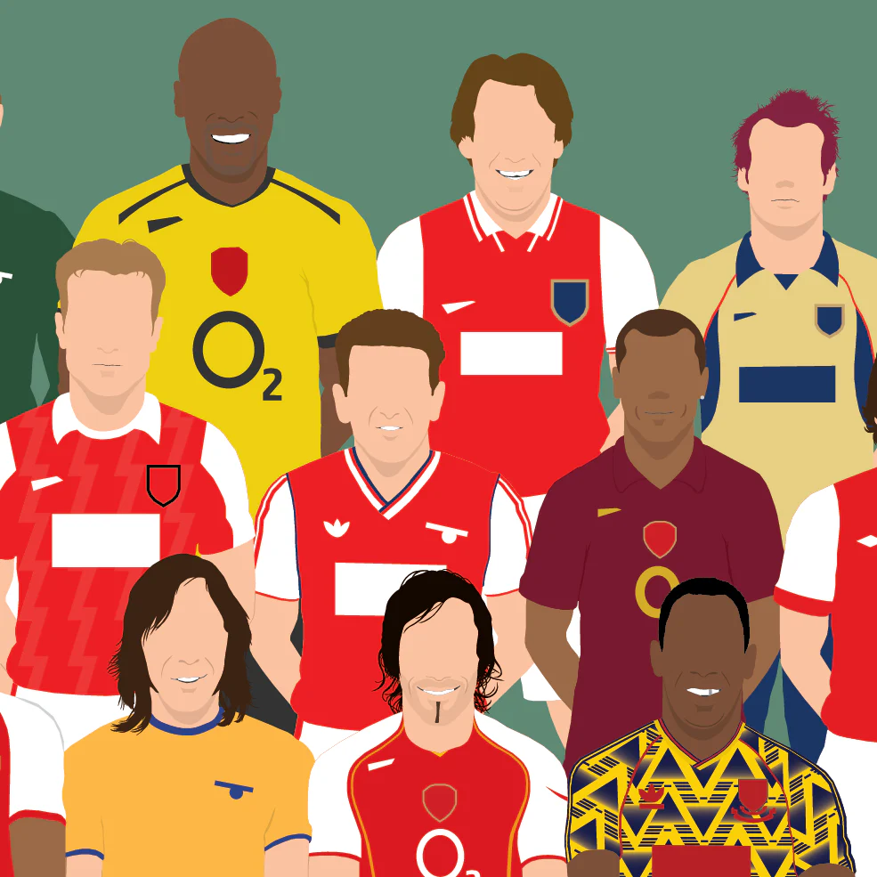 This artwork features 27 iconic players and 1 iconic manager in a squad photo style design. Carefully researched and curated, we've put together a group of players from the past and present who have helped shape the club.
