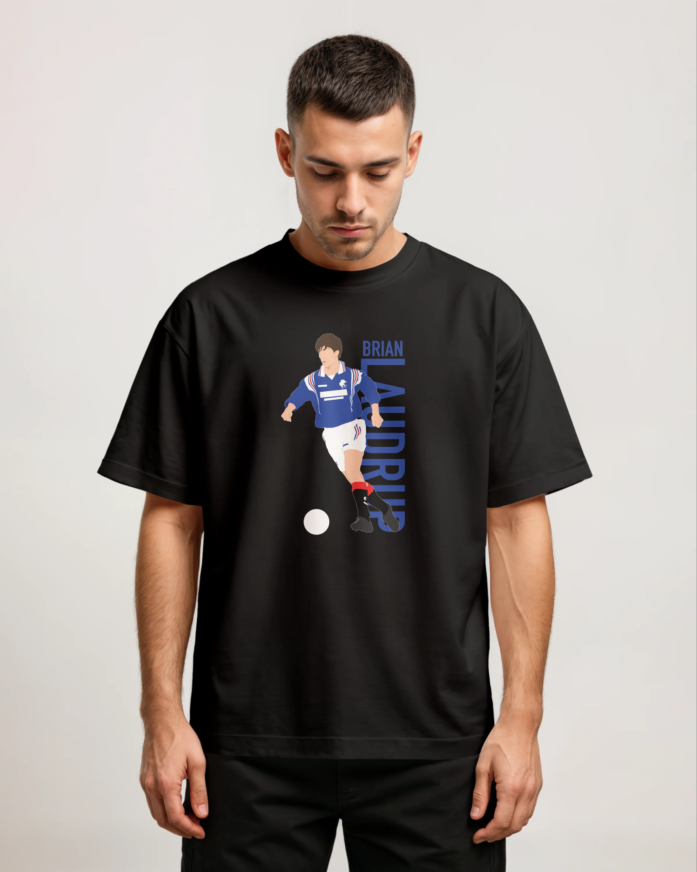 This t-shirt features artwork of Rangers legend Brian Laudrup.