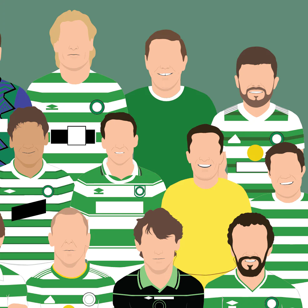 This artwork features 27 iconic players and 1 iconic manager in a squad photo style design. Carefully researched and curated, we've put together a group of players from the past and present who have helped shape the club.