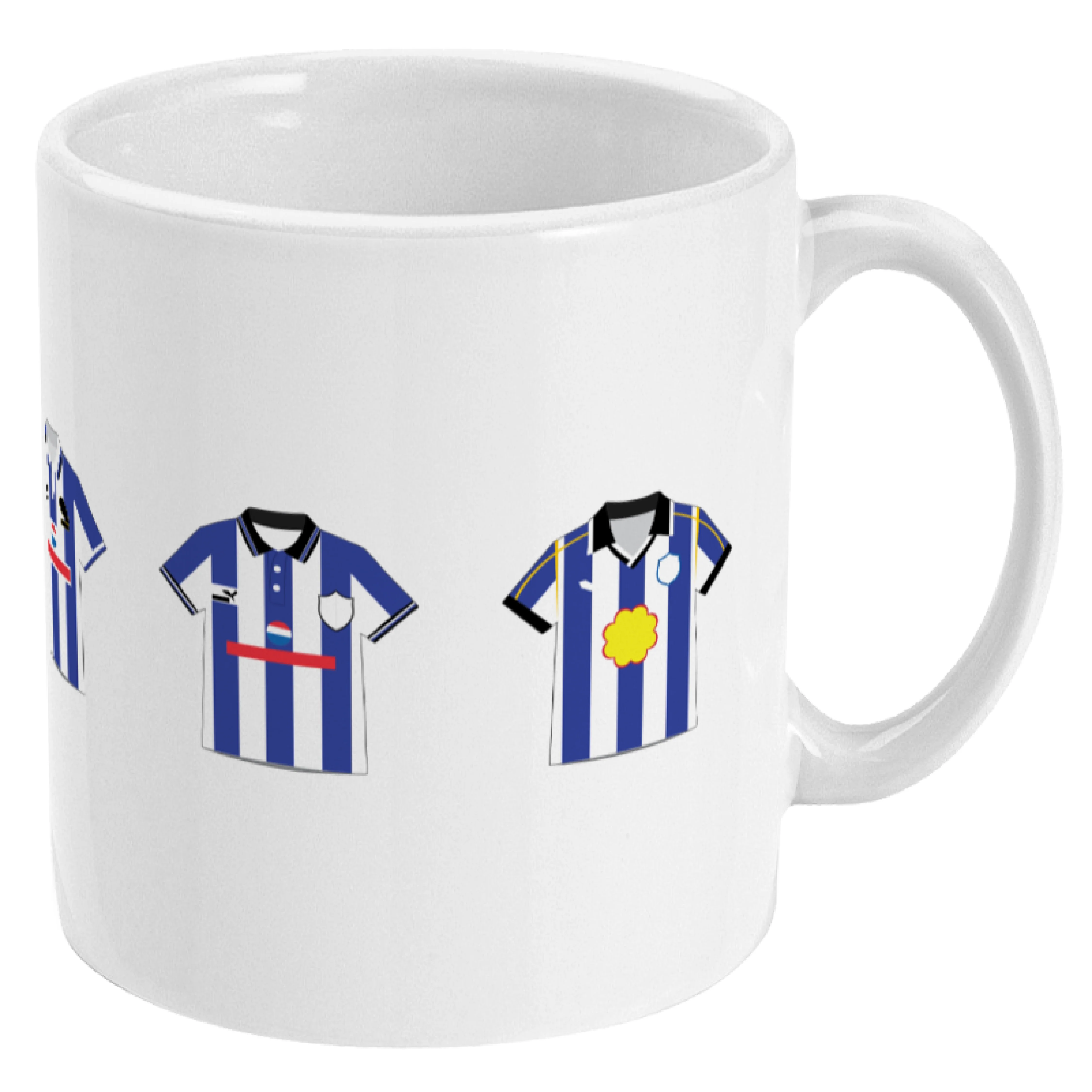 This mug features five famous shirts of Sheffield Wednesday.