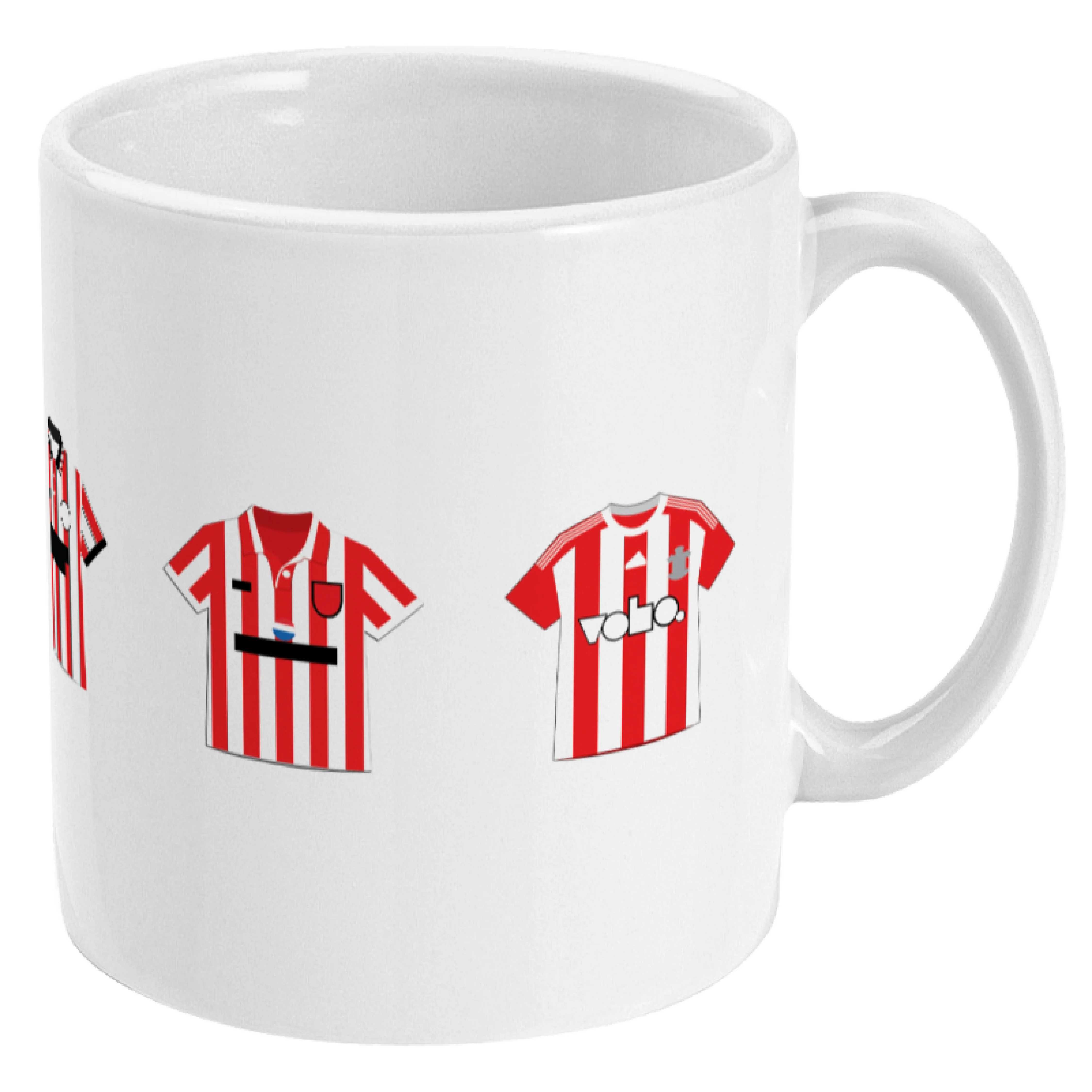 This mug features five famous shirts of Southampton.