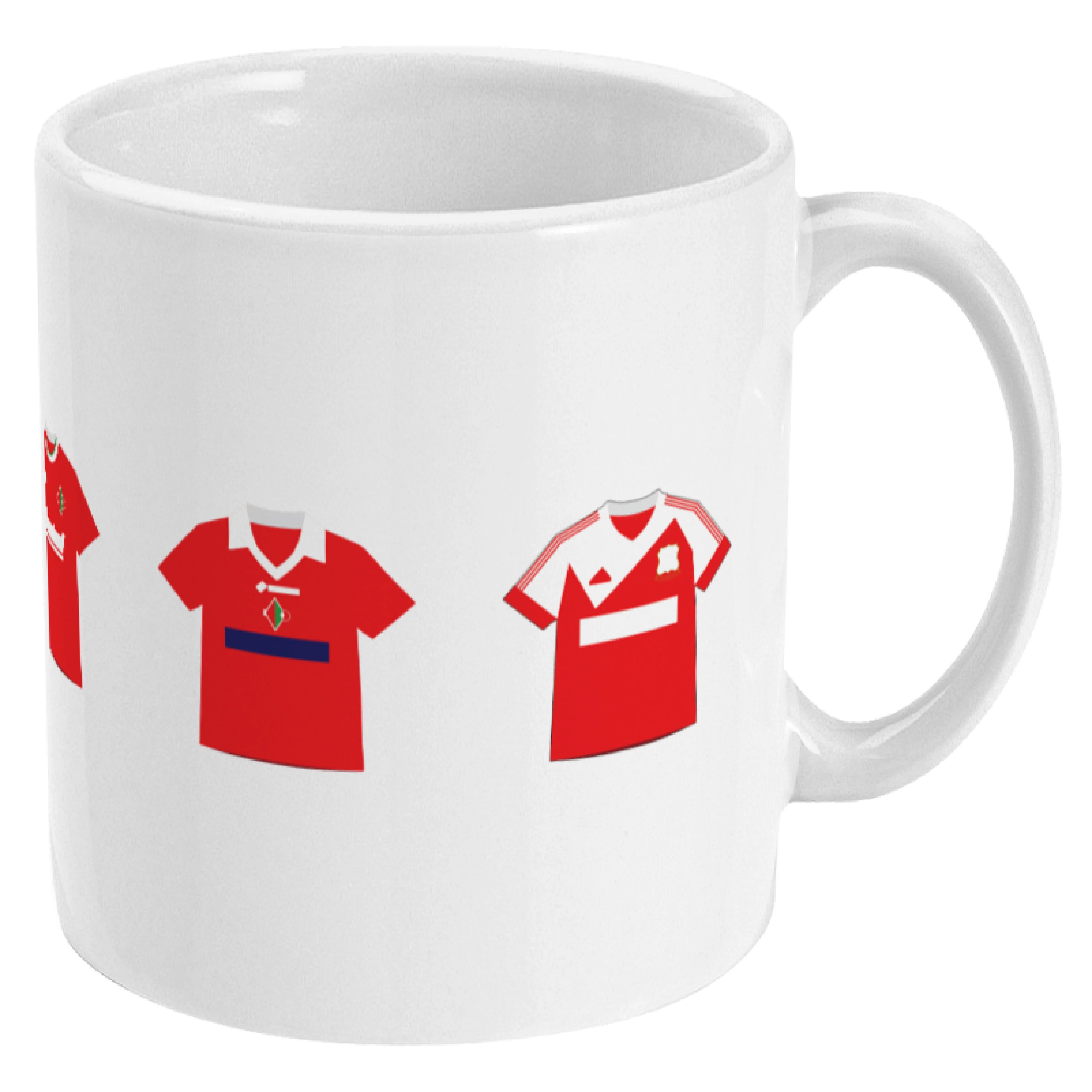 This mug features five famous shirts of Swindon Town.